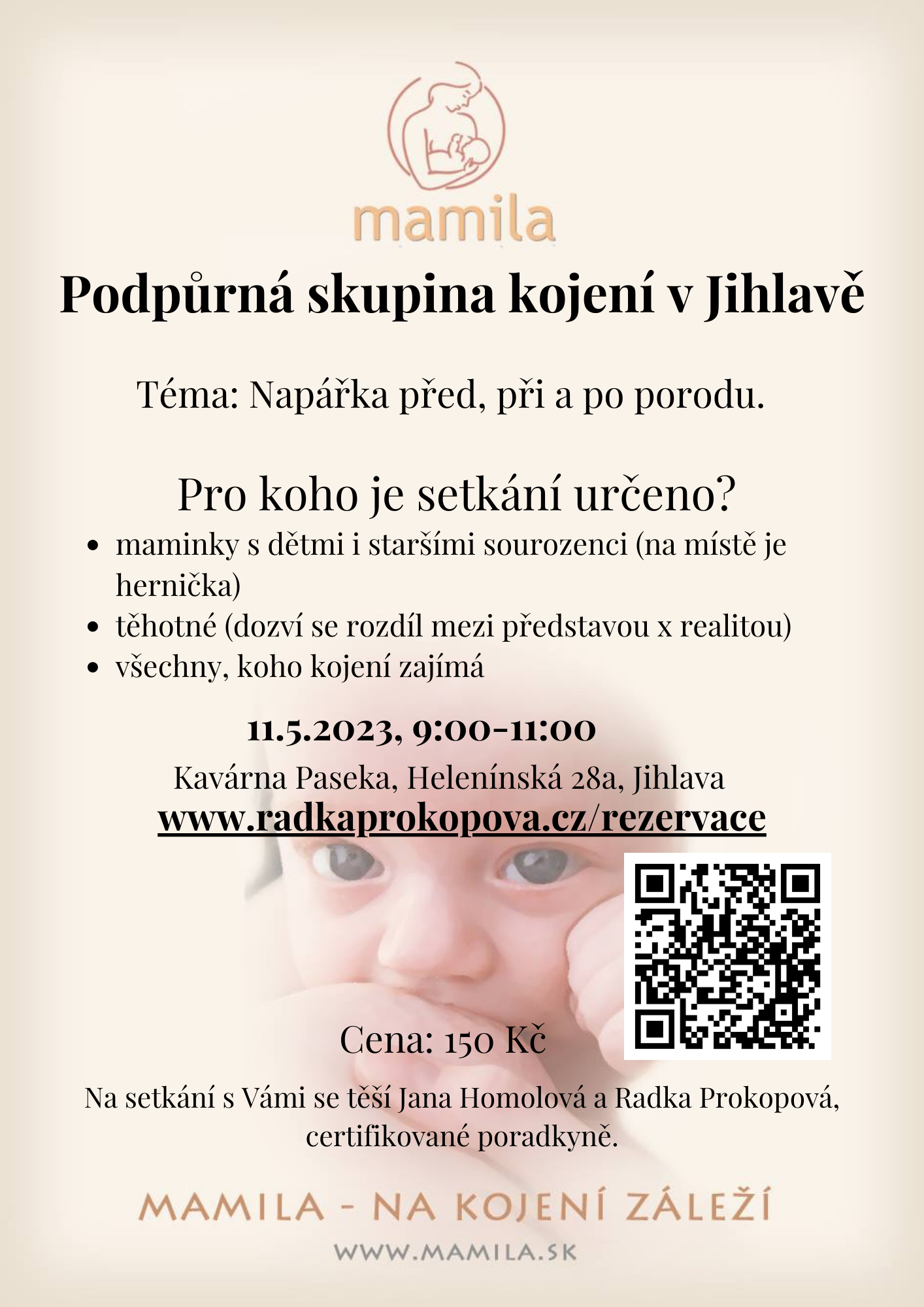 budeme opět moc těšit. Prosím vás o rezervaci, klidně přes QR kód na titulní straně. Tentokrát se pověnujeme tématu: Napářka před, při a po porodu. Užitečné téma i pro těhotné, které chtějí zažít jemný a laskavý porod![]()